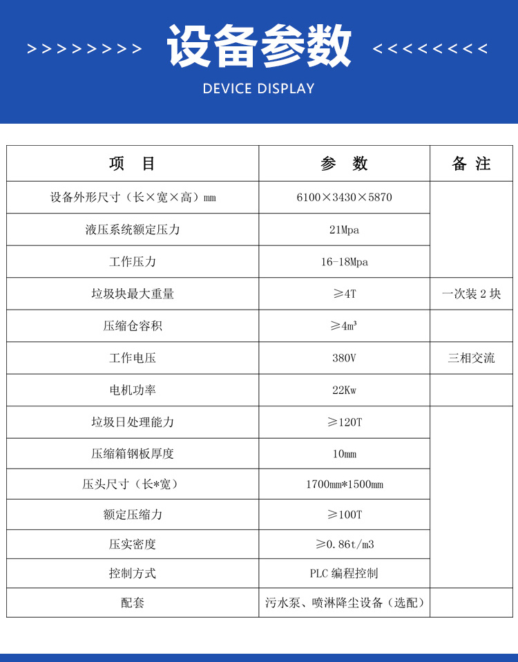 ◇采用垂直壓縮方式,壓縮力大,垃圾塊壓實密度大。